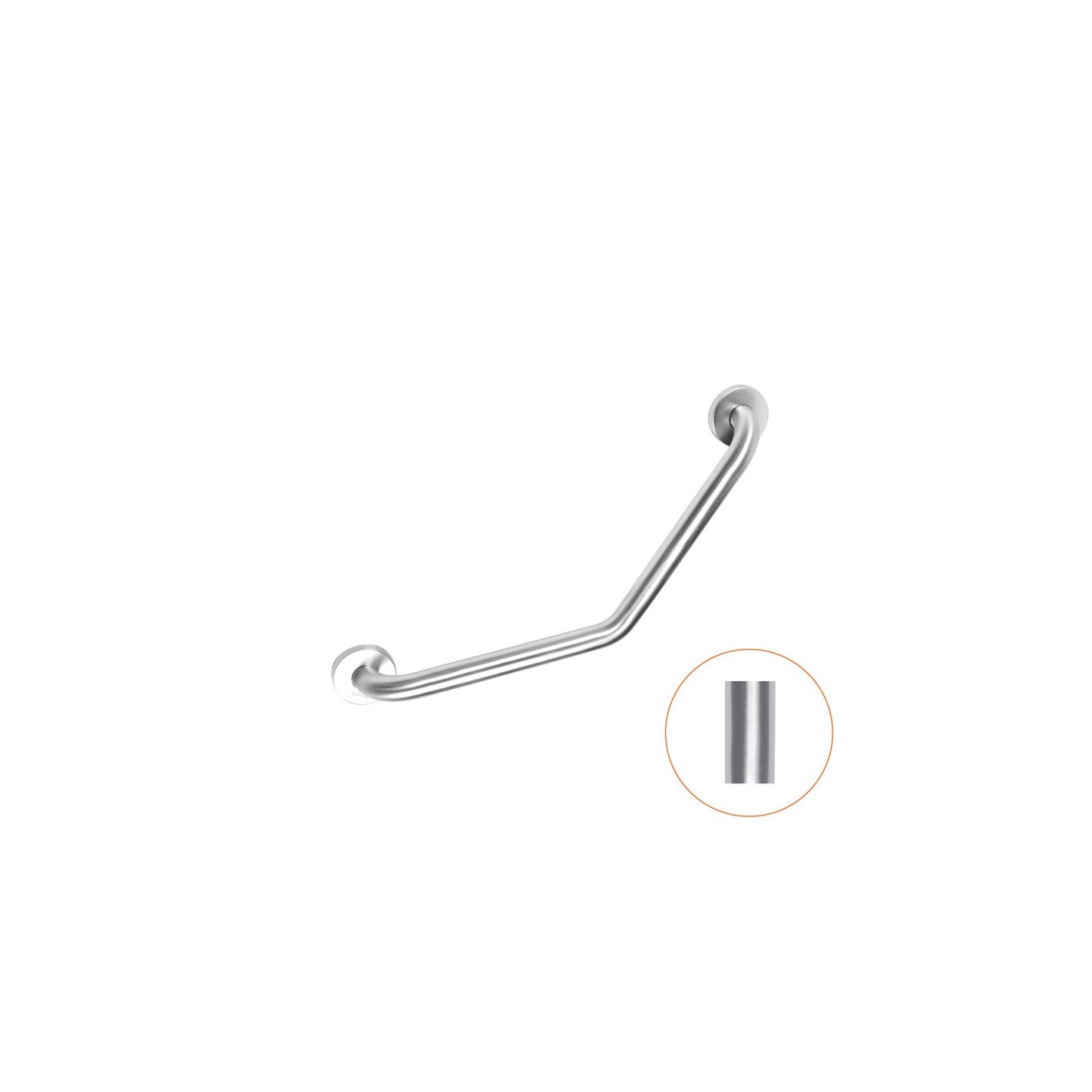 Barra de apoyo en ángulo 135º fabricada en acero inoxidable AISI 304, resistente y duradera. Ideal para mejorar la seguridad y accesibilidad en baños adaptados, hospitales, residencias y otros espacios colectivos.