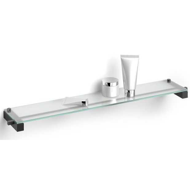 Estante de baño Carvo en acero inoxidable negro y cristal templado, con diseño minimalista y elegante. Ideal para organizar accesorios con estilo y resistencia.