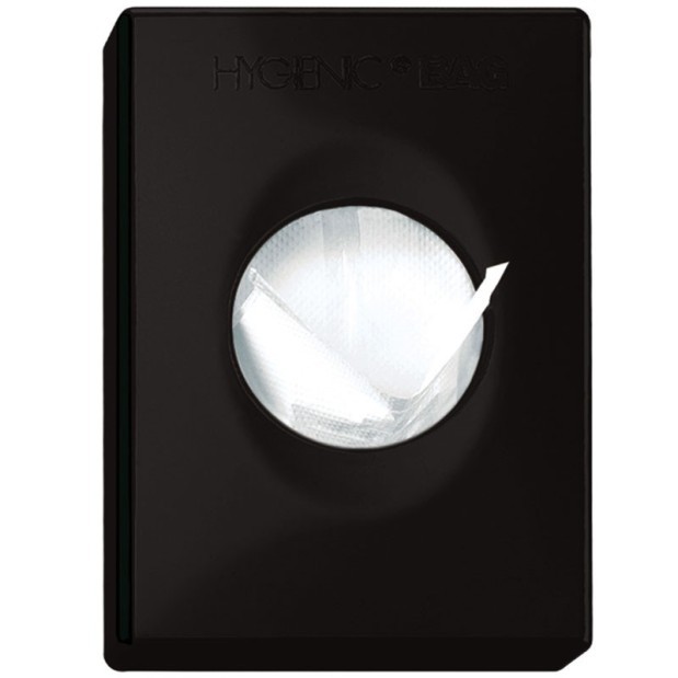Dispensador de bolsitas higiénicas fabricado en acero inoxidable.