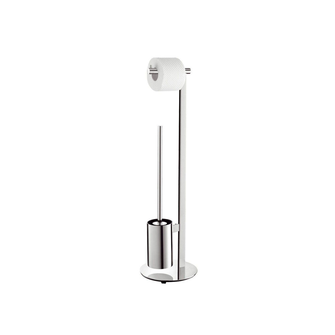- Diseño 2 en 1: Portarrollos y escobillero combinados en un solo accesorio vertical.