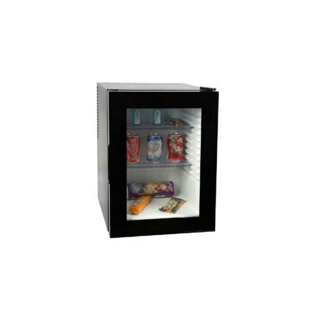 El minibar puerta cristal de 40 litros es la elección perfecta para hoteles que desean ofrecer funcionalidad con un diseño elegante. Su acabado en negro y puerta de cristal aportan un toque sofisticado, ideal para integrarse en habitaciones modernas sin sacrificar rendimiento.