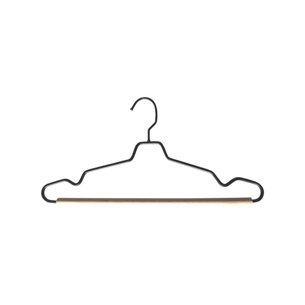 Esta percha de 29,5 cm combina una estructura metálica resistente con una barra de madera que aporta calidez y estilo. Es la solución perfecta para prendas pequeñas que necesitan mantenerse ordenadas sin deformarse.