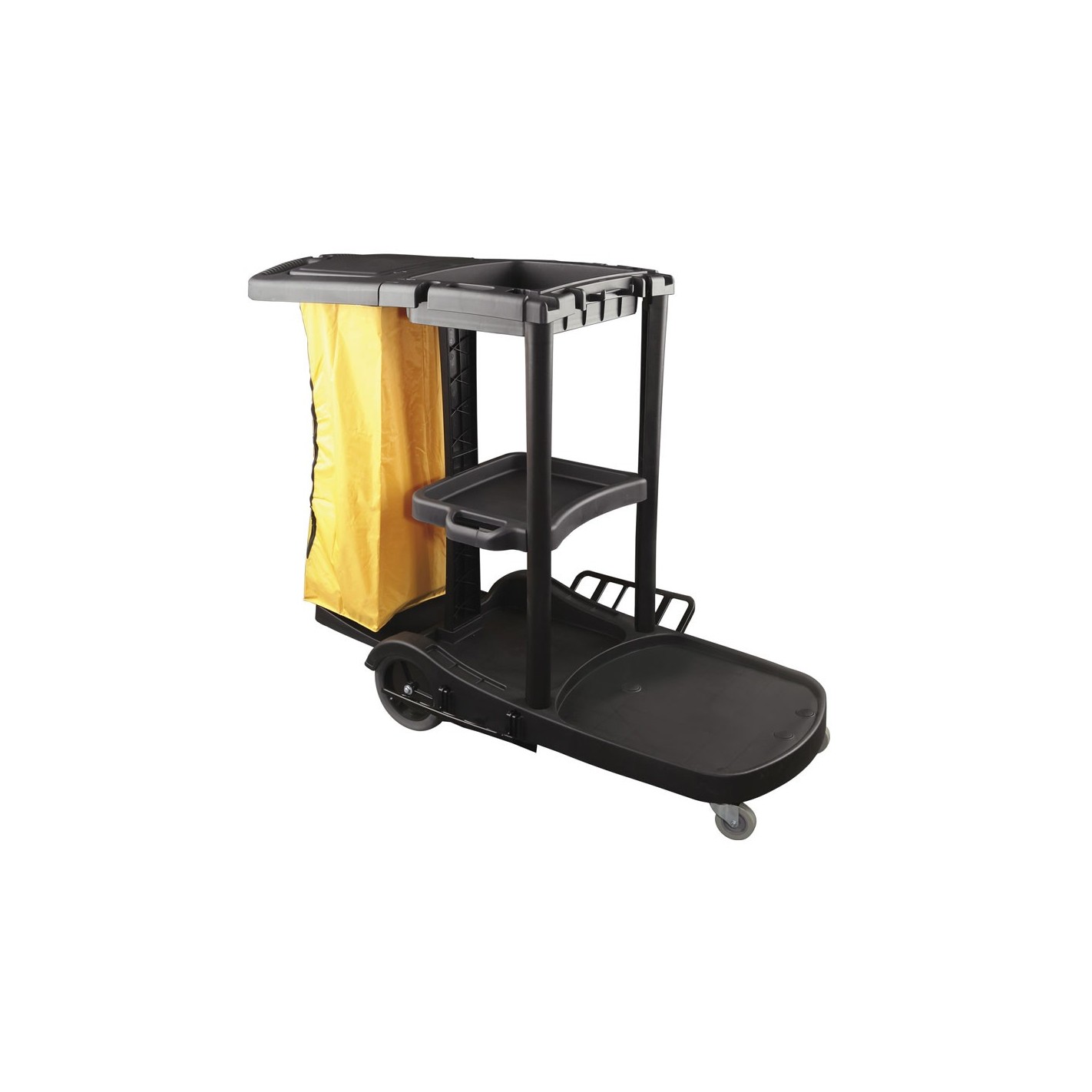 Un carro de limpieza es un elemento básico para las camareras de piso o empleados del sector de limpieza en hospitales, residencias, etc... con su estructura en forma de L proporciona una distribución eficiente del espacio.