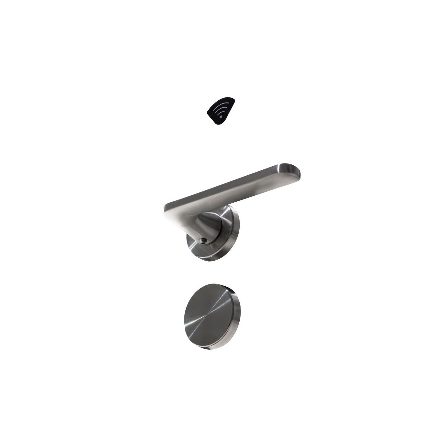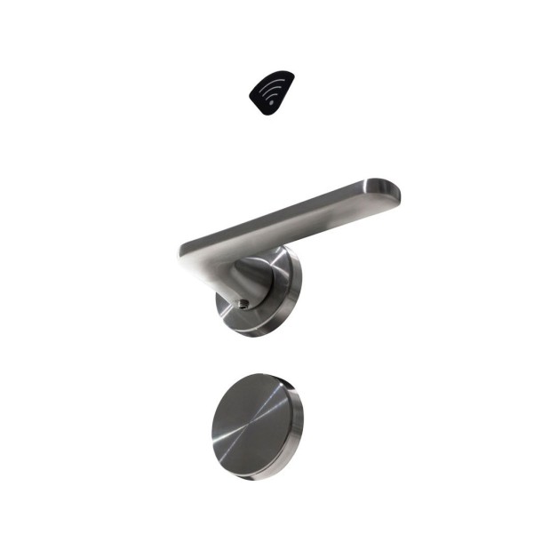 Cerradura electrónica con tecnología RFID, con lector oculto en la puerta y manetas fabricadas en acero inoxidable AISI 304.