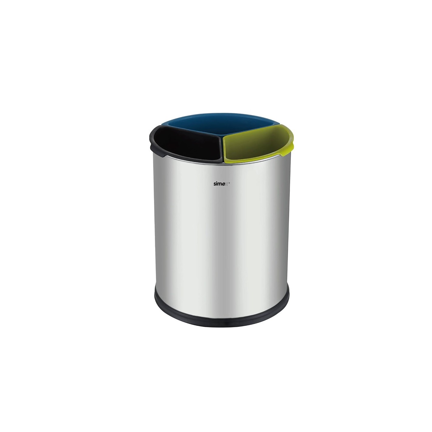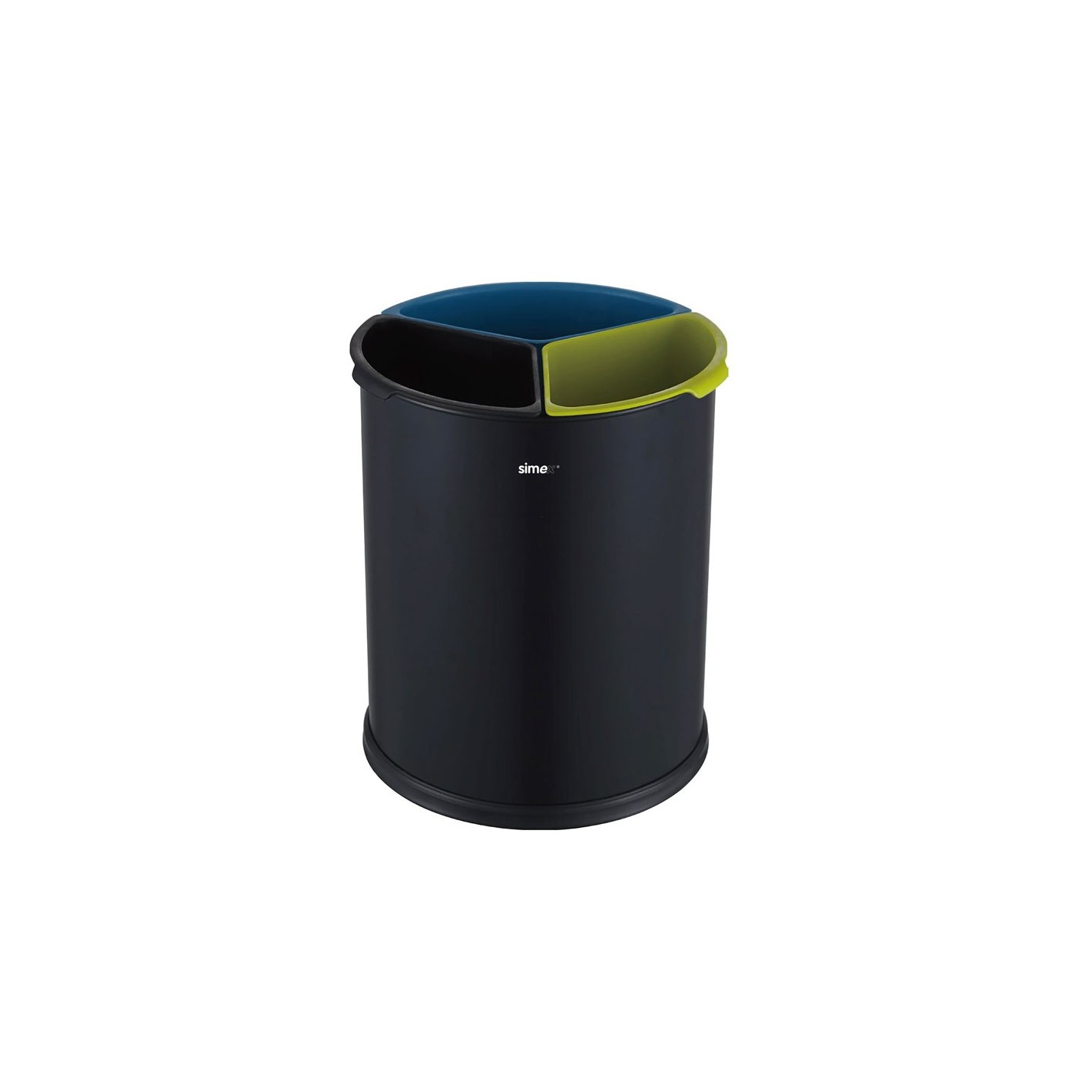 La papelera de reciclaje de 9L es una solución práctica y eficiente para separar residuos en distintos espacios. Diseñada para facilitar el reciclaje, cuenta con tres depósitos interiores de ABS en colores negro, azul y verde, lo que permite clasificar los residuos de manera sencilla y rápida.