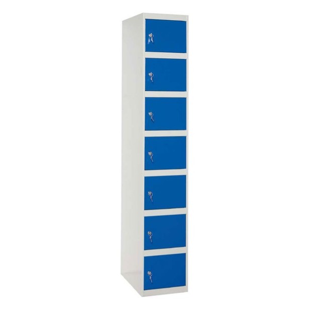 Taquilla de siete puertas por cuerpo y disponible en anchos de 25, 30 y 40 cm. Equipada con rejillas de ventilación y etiquetero. VER CATÁLOGO